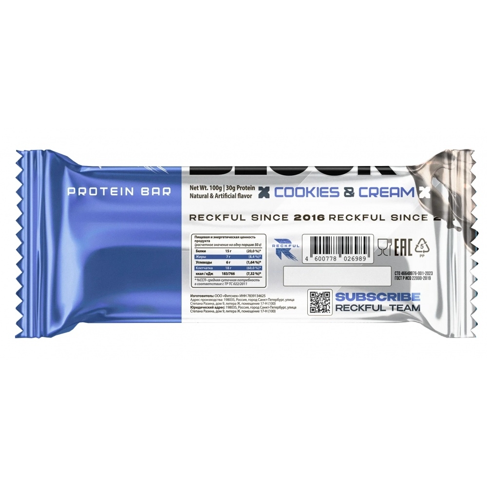 Маркет Body-Pit.Life предлагает купить Батончик Reckful Protein Bar Big Block 100 гр в Челябинске.