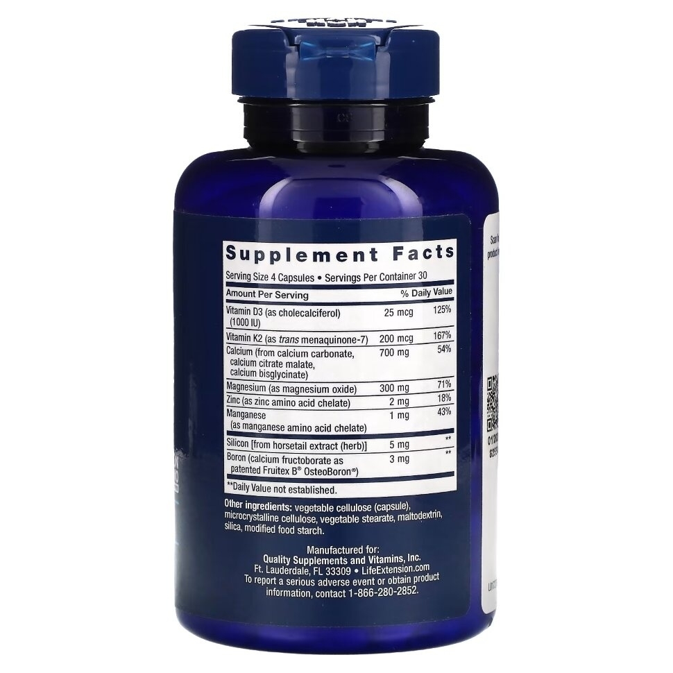 Для того, чтобы обеспечить эффективную поддержку здоровья костей, кроме кальция необходимы витамины K и D, а также магний, бор, цинк и кремний.