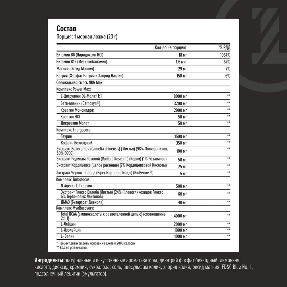 | NRG Макс смесь PowerMax комплекс: | |