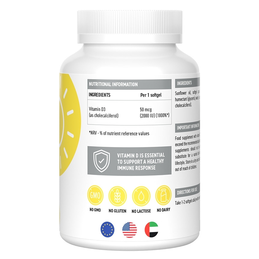 UltraSupps Vitamin D3 + K2 – биологически активная добавка, которая включает в себя ключевой витамин D3 и его кофактор — витамин K2. Витамин D3 отвечает за регуляцию кальциевого обмена в костной, мышечной и зубной тканях. Он также влияет на работу иммунной, нервной, сердечно-сосудистой, гормональной и костной систем. Витамин K2 помогает правильно распределять кальций в организме, поддерживает образование новых клеток костной ткани, участвует в реакциях свертывания крови. Витамин K2 помогает усвоению витамина D, также не допускает кальцию откладываться в почках и сосудах,