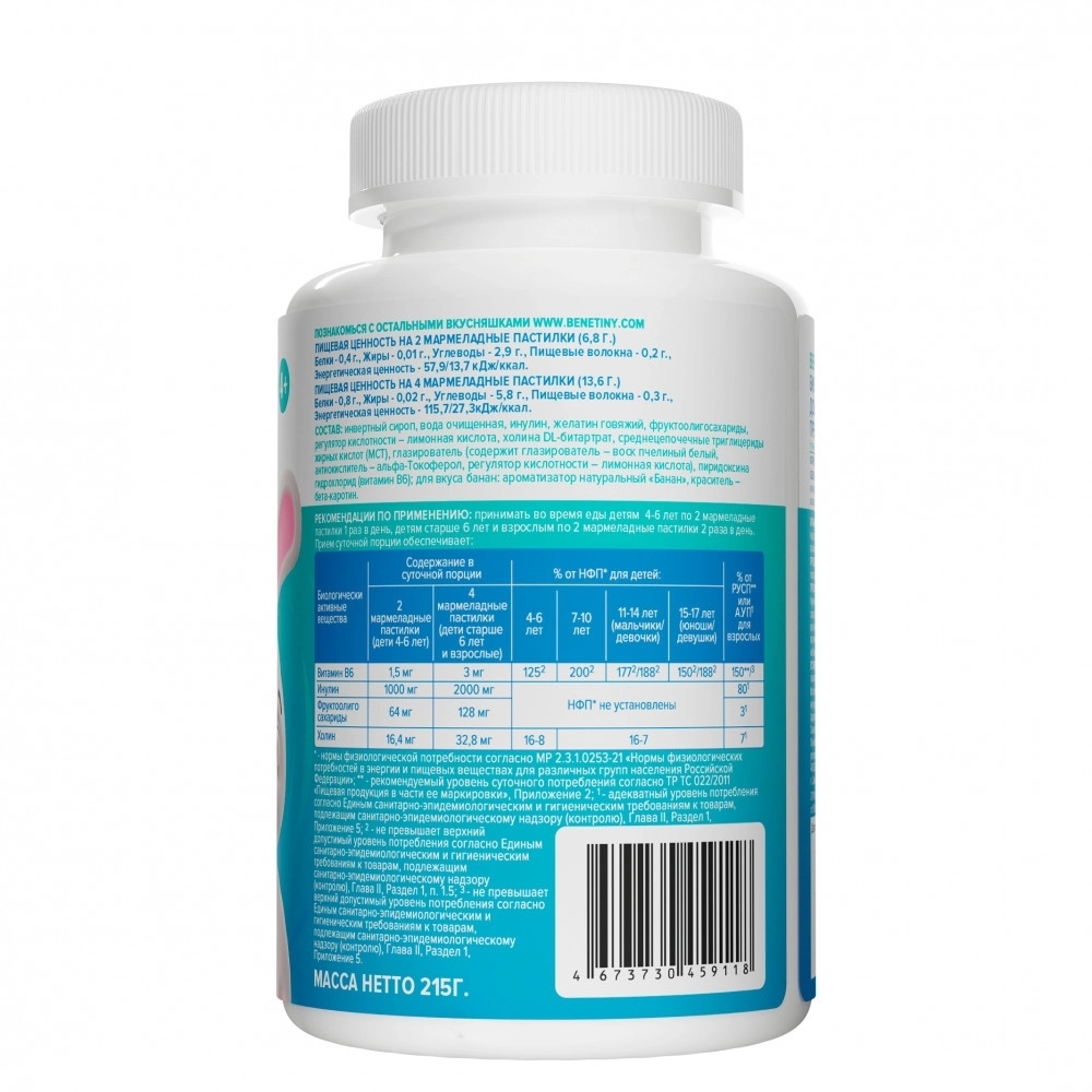 Маркет Body-Pit.Life предлагает купить Витамины Bene Tiny мармелад с пребиотиками 60 капсул в Челябинске.