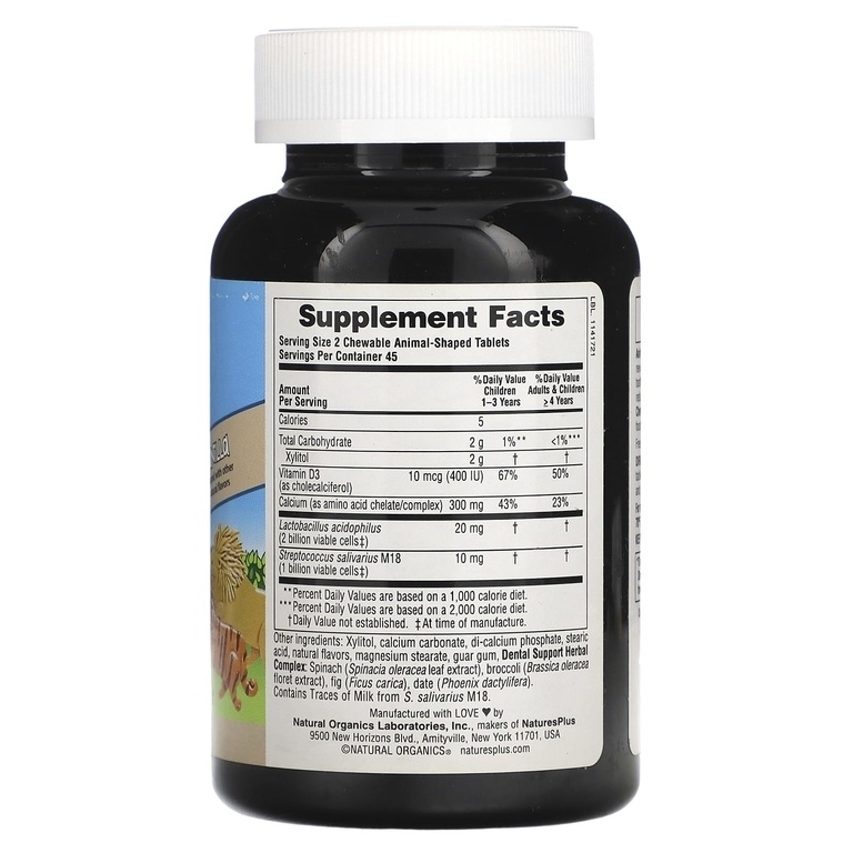 Детские жевательные таблетки Tooth Fairy от Animal Parade — это новая захватывающая добавка с живыми пробиотическими клетками M18, ацидофильными лактобактериями (L. acidophilus), витамином D3 и кальцием, способствующим укреплению зубов, и ксилитолом, которые могут снизить риск разрушения зубов. Восхитительные ванильные жевательные таблетки Tooth Fairy в забавной форме животных также содержат смесь специальных цельнопищевых натуральных питательных веществ, полезных для зубов.