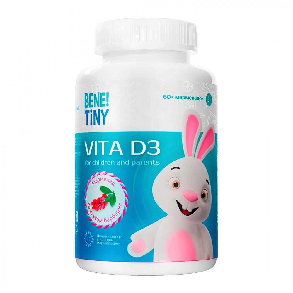 Витамин Д3 для детей Bene Tiny Vita D3 – это вкусное решение для поддержки здоровья детей и родителей. Этот витамин играет важную роль в формировании крепких костей и зубов. Он помогает организму усваивать кальций и фосфор, что особенно важно для растущих детей. Мягкие мармеладки с ярким вкусом барбариса понравятся даже самым привередливым малышам.